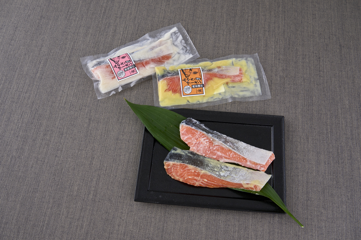 宮城県産ブランド銀鮭「みやぎサーモン」を、創業明治40年の老舗 (株)ヤマカ勝又商店が西京漬けと酒粕漬けにしました。